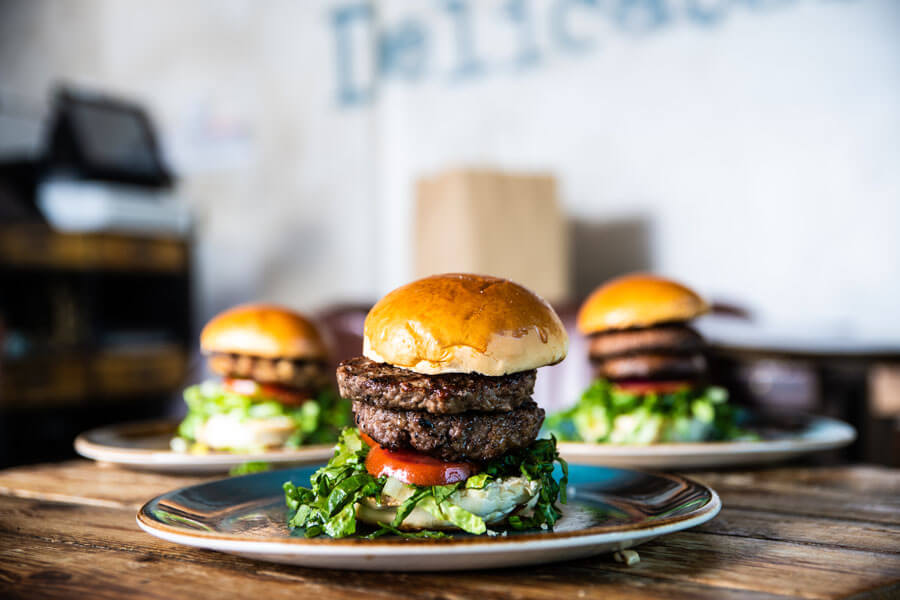 300g bone marrow and rib eye burger, portobello steak, mushroom fondue and mint aioli